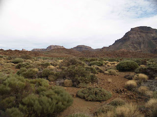 El paisaje es atractivamente desolador, cráteres, llanuras interminables de lava y, sobre éstas, asomando arbustos y líquenes de formas distintas que no quieren perderse el espectáculo.