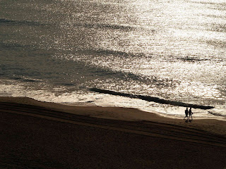 El acceso a la playa es accesible cada 100 metros aproximadamente, existiendo rampas como las de la fotografía que te llevan hasta escasos metros del mar y…. ahí se termina la adaptación, a partir de aquí o nos arrastramos como cocodrilos (opción divertida y con la que sacaremos unos euros si ponemos la gorrita) o nos ayudan tirando de la silla hasta donde nos queramos colocar, llegados a este punto, recomiendo que tiren de la silla para atrás y con las ruedas delanteras en el aire. Al mar, si nos metemos, cosa que recomiendo, también será con ayuda o a lo «cocodrilo» . Si optamos por la ayuda, una buena forma es agarrarnos a dos cuellos voluntarios y que éstos, pasen uno de sus brazos cada uno por debajo de nuestras piernas y asi, juntitos todos….. al agua patos. (los cuellos pueden ser masculinos, femeninos o mixtos). Si preferimos el estilo «cocodrilo», cuidadin al salir ya que nos convertimos en croquetitas rodantes donde la arena sustituirá al pan rallado yyyyyyyyyyyyyy algún perrito puede confundirnos por comida.