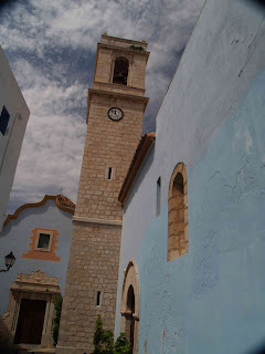 Antes de comenzar LA MADRE DE TODAS LAS RAMPAS nos encontraremos escondida la Iglesia de la Virgen del Socorro, también conocida como Parroquia de Santa María de Peñíscola, muy cuidadita y pintada en tonos azules, salvo en horario de culto, la encontrareis cerrada.