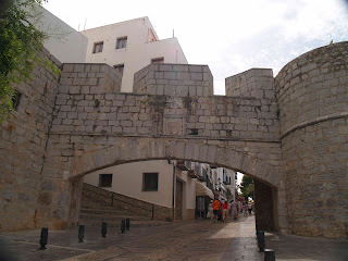 Dando un paseito o en el bus urbano (1euro y pico por trayecto) que está adaptado con su rampita por la puerta central y espacio habilitado en el interior, podemos llegar hasta la zona del pueblo «de siempre». Podemos acceder por dos entradas: la más cercana a la playa (por la noche ponen puestecitos guays) o la más cercana al pueblo. Aconsejo esta última pues las rampas son muchísimo menos empinadas por aquí que por la otra parte. Una vez que atravesamos el portal no dejaremos de subir hasta que lleguemos a la plaza donde se encuentra el Castillo. Si vamos con silla eléctrica puede que en algún punto tengan que empujarnos un poquito y si cabalgamos manualmente, es seguro que tendrán que empujanos y alguien debera empujar a su vez a quien nos empuja a nosotros… y bla bla bla.