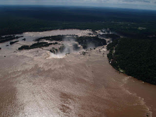 Desde un rato antes de tomar Tierra en Puerto Iguazú, solo se ven kilómetros y kilómetros de selva hasta donde alcanza la vista. Luego desde el helicóptero que tomamos en el lado brasileño del Parque de las Cataratas de Iguazú podemos ver la grandeza de la Naturaleza, el cambio de un apacible río en una bestia indomable y absolutamente desvocada que nos regala una estampa aérea como la que tenemos sobre estas líneas.