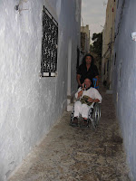En todo momento Ivan y Abdul (así se llama nuestro desconocido tunecino) hacen de porteadores improvisados levantando la silla, conmigo sobre ella, levantándome en volandas, superando escalones, bordillos, puertas….