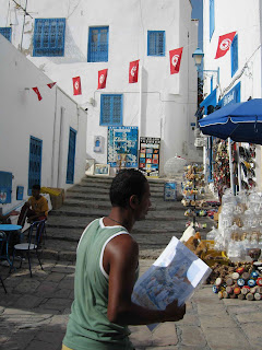El paisaje es para quedarse prendido y no quererse marchar uno de allí. Por un lado las casitas blancas con sus ventanitas, rejas y puertas azules desde las que ver la inmensidad del Mediterraneo, y el Golfo de Túnez, encrespado y dulce.