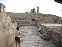 Estamos en el norte, y seguimos con nuestro amigo Zamek, el chofer, que ha hecho todo lo posible para seguir con nosotros. De toda la expedición hemos quedado Ivan, Conchi y nosotros dos, Eva y el escritor. Un nuevo guía sustituye a Fati que debe seguir por el desirto. Se llama Rida (insisto, escribo la pronunciación), campechano y muy simpático, nos enseña a decir hola, en árabe, ASLAMA (que ya lo seeeee, asi no se escribeee, ya lo seee). Conforme circulamos por el Norte aparece otro Túnez, otra zona, otra gente, otro clima, los matorrales y las palmeras dan paso o se mezclan con los pinos mediterráneos y los olivos, la arena rojiza del Sahara da paso a la dura roca de montaña y a la arena que el mar abandona como recompensa a los azotes que sus olas dejan sobre las costas norteñas.