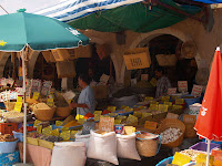 Accedemos sin problemas con nuestra silla de ruedas sin problemas, nos ofrecen todo tipo de productos, sin agobiar, desde «artefactos mágicos» donde desaparece el líquido hasta la Rosa del Desierto, pero la protagonista es, sin duda la especia, de todas las variedades, desde mostaza a nuez moscada, natural y a graner.