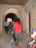 Accedemos a él por una rampa larga y pronunciada perfectamente embaldosada, lo que hace que nuestra silla parezca un pastilla de jabón, no asustarse, con ayuda no tiene mayor problema, en mi caso la ayuda vino de José Luis e Iván, pero los tunecinos hacían fila para ayudarme, de verdad, son gente amabilísima.