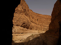 Un torrente seco por la evaporación, pero acostumbrado a transportar agua desatada procedente de las lluvias de Argelia (a pocos kilómetros de aquí), preside este paraje.