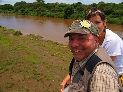Sobre estas líneas aparecemos en el puente del río y al fondo, abajo los cocodrilos, y debajo el puente, que pasa totalmente desapercibido, sin imaginarse lo que hay unos metro más abajo.