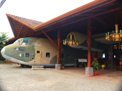 Otro restaurante que no os podeis perder es El Avión, construido a partir de la estructura de un modelo Fairchild C-123 del año 1954. Sin embargo, lo verdaderamente curioso es que el avión fue comprado en la década de 1980 por el Gobierno estadounidense apra la Contra nicaragüense, pero no salió tan siquiera del hangar en que se encontraba en San José a causa del escándalo entre Irán y la Contra en los días posteriores, en el que también se vieron envueltos Oliver North y seguidores del Gobierno de EEUU. Debido a esto, al avión se le llama cariñosamente "la locura de Ollie". Así en 2000, los actuales propietarios de "EL Avión" lo adquirieron por 3000 USS y lo transportaron pieza por pieza a Manuel Antonio. Hoy en día ocupa un costado de la carretera principal, donde parece que haya aterrizado forzosamente junto a los pies de la colina. Es perfecto para tomar una cerveza, probar su guacamole disfrutar de una puesta de sol sobre el Pacífico. Además, en las noches de la temporada seca, deleita a sus clientes con música en directo. Podeis comer perfectamente a base de casados por 5 o 7 USS.