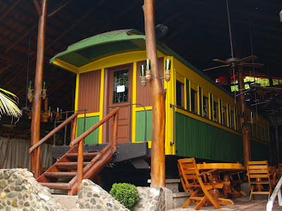 Si teneis un poquito más de tiempo, parad en los locales de copas que hay a lo largo de la carreterita que va de Manuel Antonio a las playas, son muy curiosos como el que está debajo de estas líneas, el Vagon. Un antiguo vagón de tren, bien situado, con vistas y mesitas alrededor, que resulta de lo más acojedor.