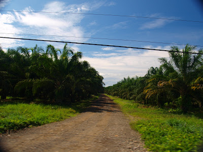 La industria del aceite de palma es muy llamativa, y según se avanza por esta zona, es curioso observar a los trabajadores de los campos aledaños a la carretera. Los trabajos diarios de mantenimiento incluyen tareas para asegurarse de que las palmeras estén libres de insectos, como desmalezar y aplicar insecticidas a los troncos. Asímismo, es preciso cortar las hojas de la palmera con regularidad para estimular el crecimiento de sus frutos y favorecer el acceso a estos. Los empleados también se encargan de recolectar los frutos maduros y transportarlos a las plantas de producción, donde estos son separados y prensados. Tal vez este úlitmo paso sea más obvio, habida cuenta de los enormes camiones rebosantes de frutos rojizos, algunos de los cuales terminan esparcidos por este maltrecho tramo de la Costanera (carretera que recorre la costa); de modo que ojo al llegar a esta zona.