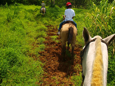 1.- CABALGATA POR EL BOSQUE LLUVIOSO: Las chicas, Eva y Conchi decidieron hacer una cabalgata por los alrededores de La Virgen y a lo largo del Río Sarapiquí.