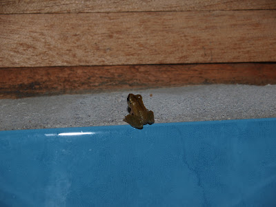 RANA DE HOJARASCA: Además de ser nuestra vecina ocupa en el baño de la tienda de campaña donde pasamos la noche y de la que luego hablaremos con detenimiento, se trata de una especie de ranita que habita en los mantillos cercanos a quebradas (riachuelos) o en la vegetación baja durante la noche. Se alimentan de coleópteros, dípteros y ácaros.